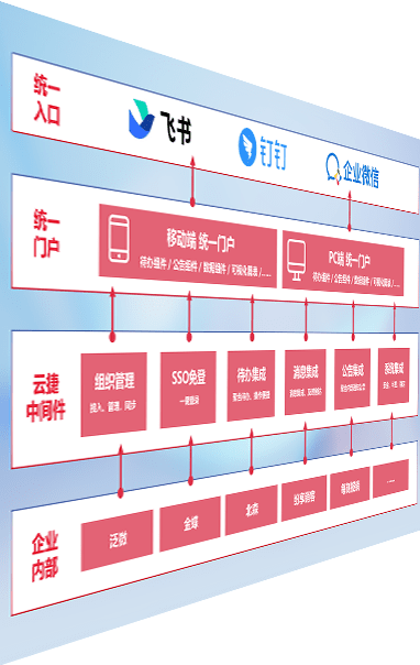 对协作平台提供支持服务,,,支持企业应用与协作平台对接,,包含组织同步、、、、消息集成、、、待办集成等。。。。支持目前主流的协作平台:钉钉、、企微和飞书。。。