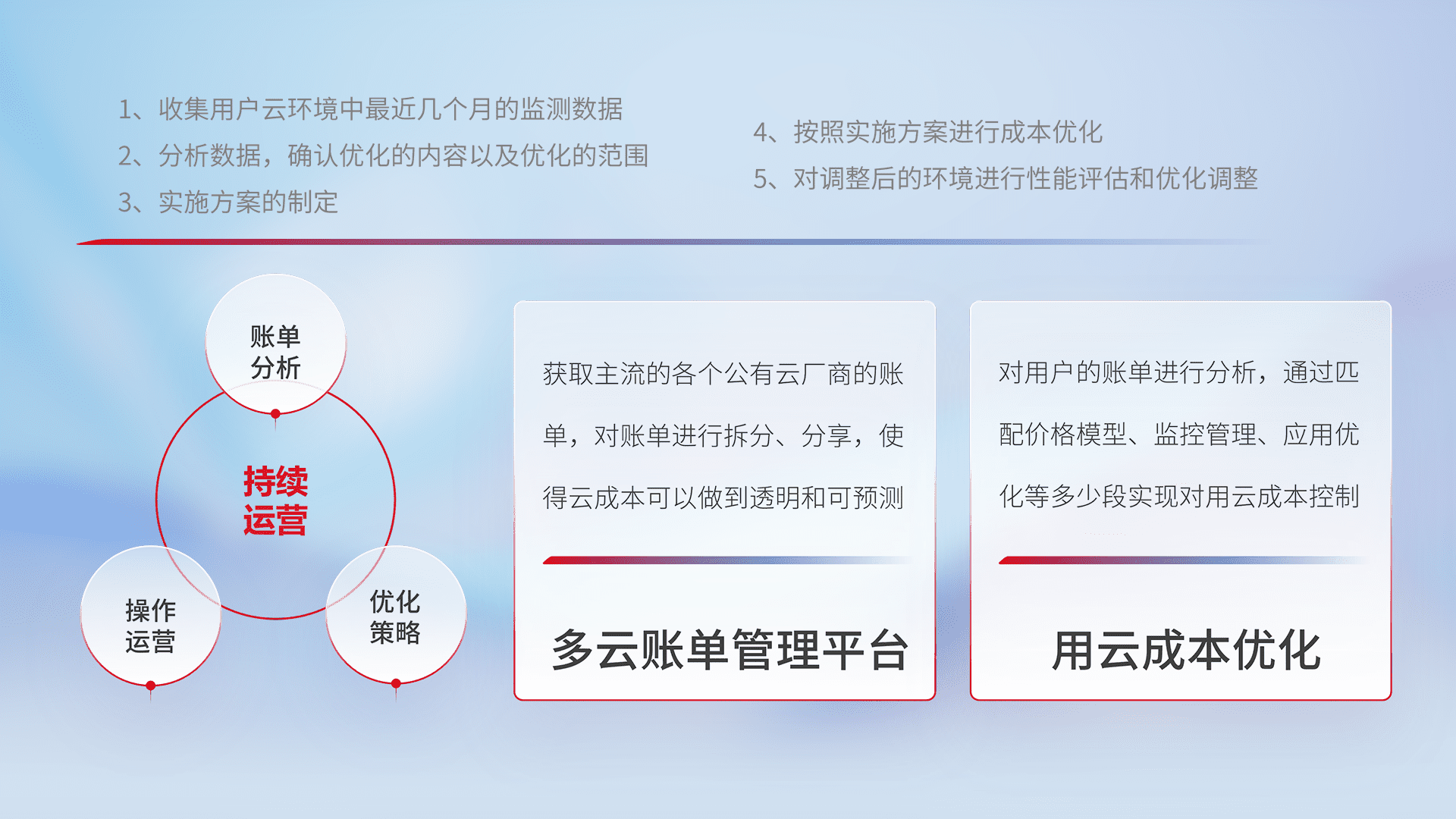 运用智能化工具分析云资源,,,,提供日常费用可视化工具,,,自动账单拆分,,,成本优化云上费用,,,,降本增效。。